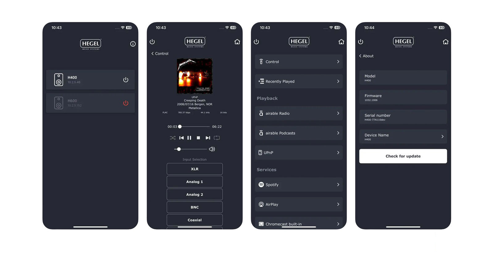 Мобильное приложение Hegel Control работает с усилителями Hegel, построенными на новой платформе – H150, H400 и H600.
