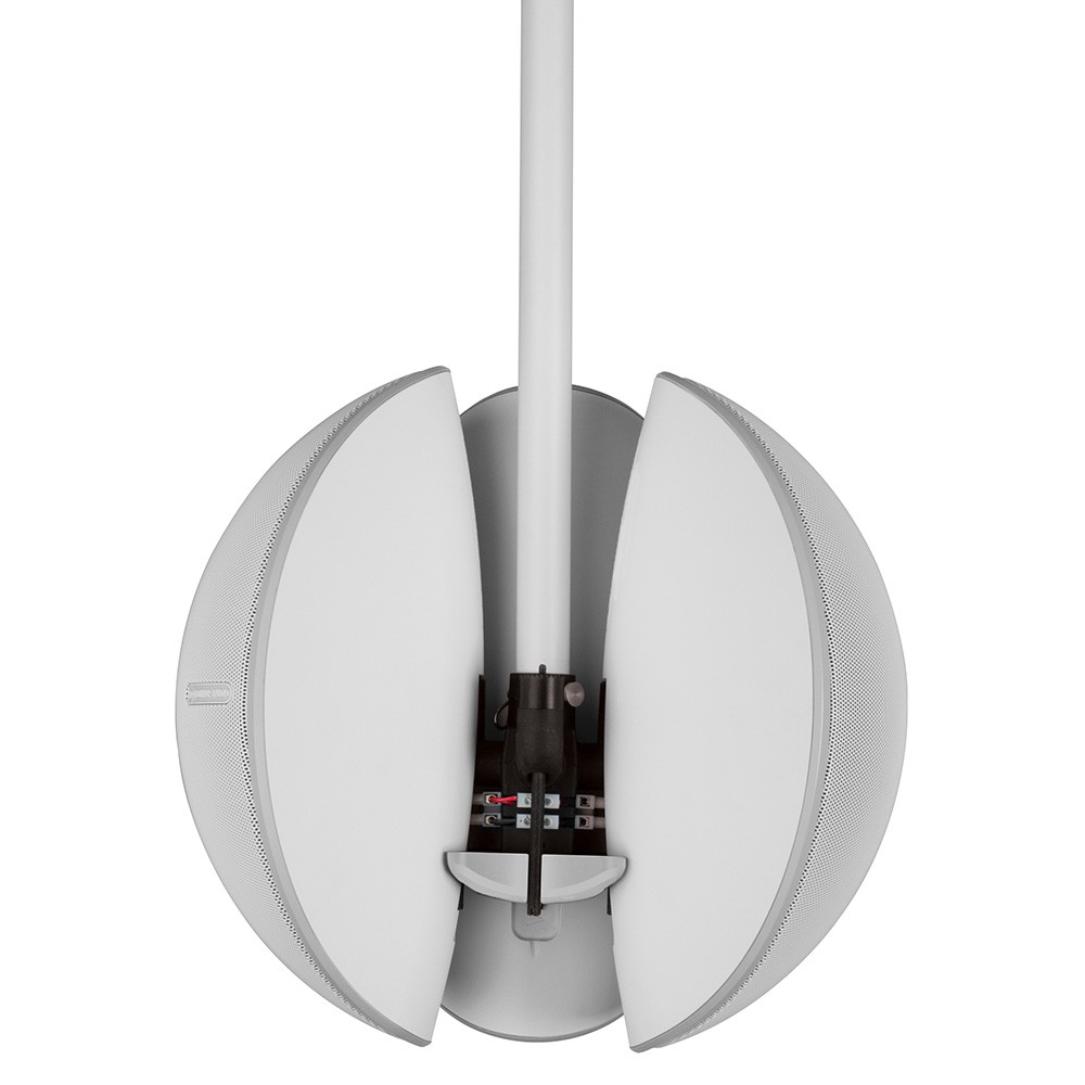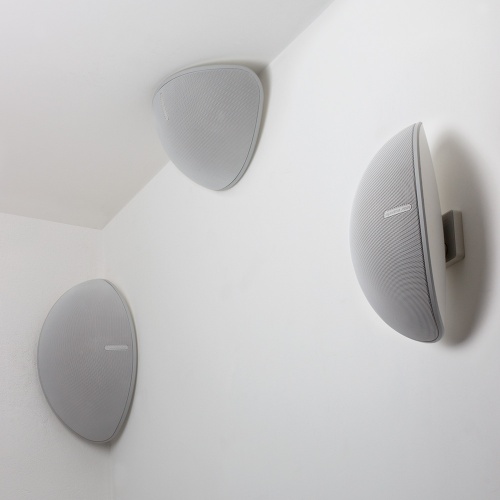 Эксплуатационная гибкость этой колонки – не только в многообразии возможных условий для её размещения, но и в большом числе вариантов её установки. Предусмотрены три разных кронштейна и девять установочных конфигураций: угловой монтаж на стене или карнизе, два варианта размещения на стене с использованием двух угловых кронштейнов, крепление вплотную к стене, монтаж под углом к стене с использованием клина и стандартного кронштейна, плюс крепление под потолок или в виде «кластера» из четырёх колонок.